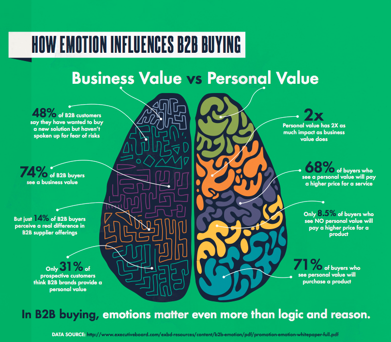 Many people feel it’s difficult to appeal to emotions in B2B marketing, but everything in marketing is driven off of emotions – and B2B is no exception. Check out this awesome graphic about how emotion influences B2B buying, brought to you by Kapost: