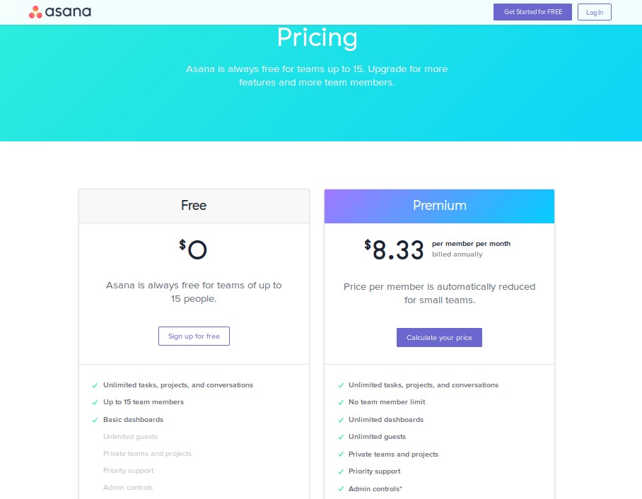 Most SaaS products offer multiple tiers of pricing and service. The tiers are differentiated by things like number of users, size of supported database, enhanced features, and so on. Some vendors also offer a free basic version of their product instead of a trial. For example, teams with up to 15 members can use Asana for free.
