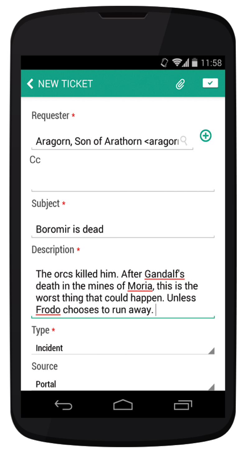 The Freshdesk Support App on an Android Device.
