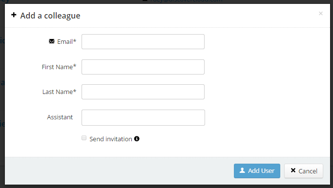 Clicking on the “Add a Colleague” button will open up a simple pop up where you can insert a colleague’s name and email address. You can also associate a personal assistant to them if he or she needs to be notified as well when visitors check-in or don’t check-out.