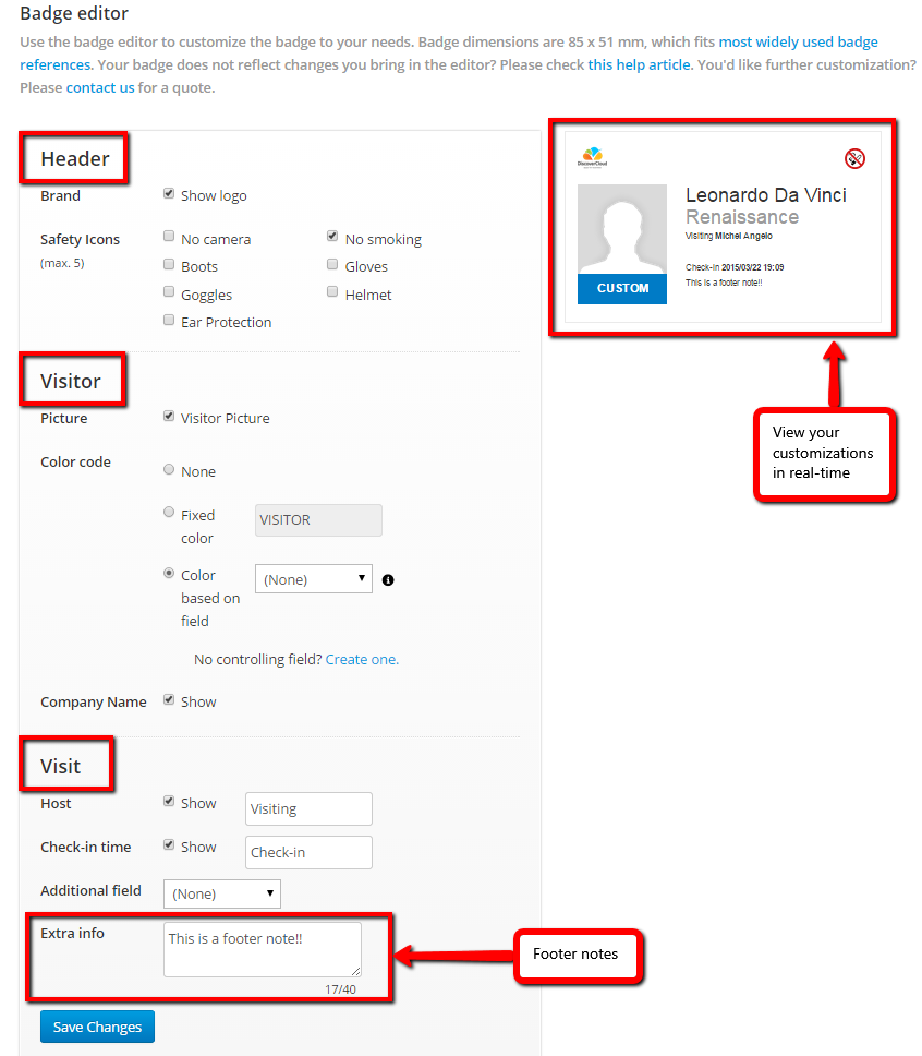 The company logo you upload will then be applied to the heading of all company documents, and is used as the background for the Kiosk App, as well as an option in the badge editor. This creates consistency in branding your company.