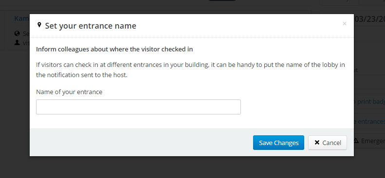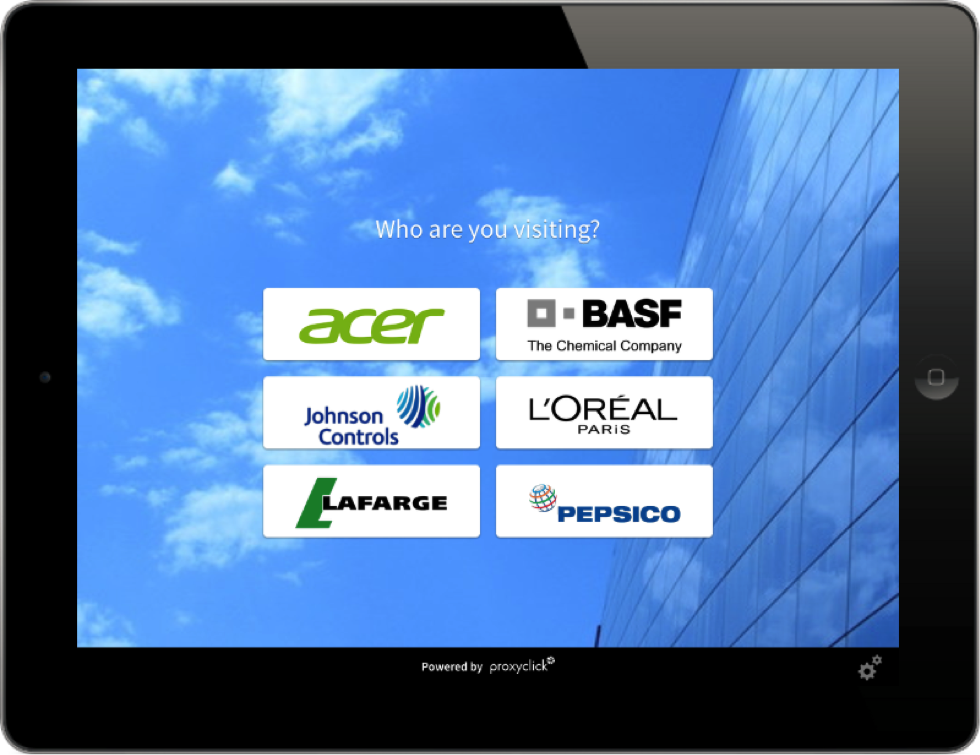 Proxyclick lets you easily set up a visitors kiosk at each and every entrance, and each kiosk will feature the exact same branding experience of your choice. This simple, albeit effective features serves to tell your clients, “Still the same company, just on the other side of the building.” You can even customize the entrance’s name so all colleagues will be informed as to where the client checked in. Take a look: