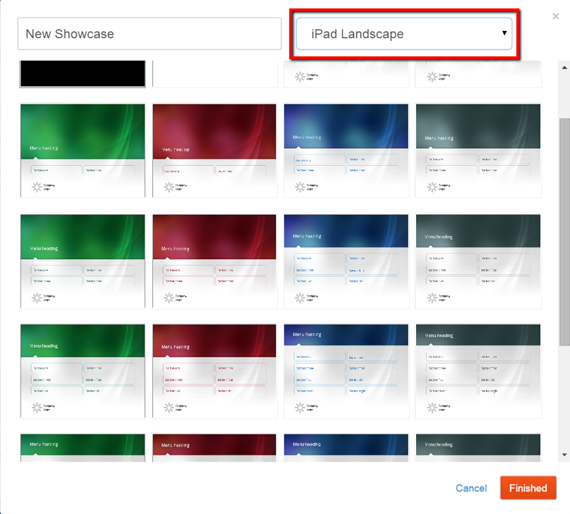 For those who need more comprehensive demos & presentations, you can insert a “submenu” to delve even deeper into certains subject matter. Submenus essentially allow you to create a Showcase within a Showcase. You’re presented again with a list of templates (a smaller list this time) check it out: